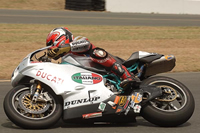 At that moment I smiled inside my helmet as I remembered a conversation we all had at Ducati this winter. Among the discussions, somebody brought up the point that we should run a 749R is 600 superbike this year. The point being that this class might represent a generation of motorcyclists, and fans, that quite mistakenly don't even recognize Ducati supebikes as viable competition. After all, we've been winning races on Ducatis in this very club for years, yet still it seemed somehow that people were suddenly shocked in the 749R's abilities.