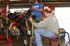 I'd like to say we made up for our underdog horsepower disadvantage on the brakes, or that we got by him by out-riding him, but the sad truth is we were doing our best and couldn't get by. This was NOT Tommyboy running scared. This was Tommy on his game.. Lap after lap the best we could do was stay close. We'd go through turn three with such great roll speed that we'd almost hit Tommy. We'd out-drive him, outbrake him, and desperately keep in touch through traffic that seemed to be there solely to make our task more difficult. On lap six I tried a late braking move on him right in front of a crowd in turn three. They say everyone rose to their feet as we came from four bike lengths behind and shot by Tommy on the brakes with our rear end swinging from side to side. I watched that apex pass right on by though, and recovered as best we could by going way out to the tire wall before turning in on the marbles. The crowd surely thought we were done but we managed to square off our turn before the tire wall and head back to the fight just outside Tommyboy's left side fairing. Turn three is a 160 degree turn that starts flat, but exits up a long off-camber hill that seems to keep turning right, for what seems like an eternity, while you bang up-shifts as the edge of the track grows threateningly closer (I say "threateningly" because there lies a concrete barrier wall about twenty five feet off the side of the track that boasts a very long list of victims over the years). As Tommy and I jammed our way up this hill, with our bike about six inches to his outside, I expected him to give us some room so the two of us could take this fight all the way to turn six "The Bowl." But Tommy was having none of it. He rode his line right to the apron, and pinched us off. I had to let off or it was game over. Just then some guy named Kimp came rocketing by as the three of us headed for the bowl - Tommy still in the lead. I thought, "Great move, jack-ass. Now we're in third!" For the next two laps we hit traffic that was terrifically slow. Our lines were all over the road. At times the track looked like a swarm of bees after a twelve year old took a good swing at a hornets nest. I knew our chances of catching either of them were slim to none, but we gave it everything we had anyway - desperately clinging to the hope that we could stay close enough in touch, "just in case." On the white flag lap, while going through turn ten, those two came up on a lapper that really jammed them up. Our bike was about six lengths behind. Kimp, who was leading at this point, got through the chicane clean, but I saw Tommy's shoulders tighten up - which told me he was in trouble. He hesitated behind this lapper for an instant too long, and sometimes an instant is all a Ducati 749R needs... Suddenly we were in a "good enough" spot to try for a double pass through this chicane. Typically there is only one line through a chicane, and this chicane was no different. I squared the turn off, picked it upright as much as I could, aimed for a line just over the edge of two curbs, and pulled the trigger... And we made it.... Second place from 20th, with Tommyboy right on our tail. Two Ducatis on the podium for heavyweight superbike. First time all year at NHIS. Does it get better than that....?