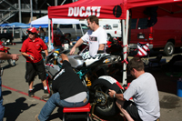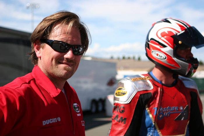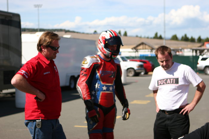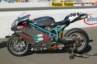 At that moment I smiled inside my helmet as I remembered a conversation we all had at Ducati this winter. Among the discussions, somebody brought up the point that we should run a 749R is 600 superbike this year. The point being that this class might represent a generation of motorcyclists, and fans, that quite mistakenly don't even recognize Ducati supebikes as viable competition. After all, we've been winning races on Ducatis in this very club for years, yet still it seemed somehow that people were suddenly shocked in the 749R's abilities.