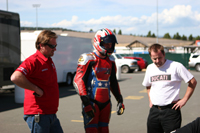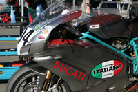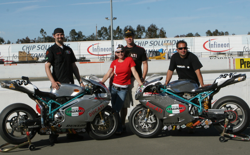 I left our last AFM weekend in dire straights. After working harder than I ever thought I could on a bike, to go faster, our end results last month were lap-times well off the pace we needed to be at. I think I took this personally because from the Monday after that race I've been eating half portions, running every day, working out, and thinking, "Where in the hell are we going to find four seconds?!" Thankfully I wasn't the only one doing their homework during our off-time. Scotty Rumple, Bazil Josselyn, and Jason Putris, of MotoItaliano really took their time creating a difference with our bikes. After all, up until this weekend we have only had one machine to run. But this weekend, thanks in great part to the return of Dennis Harmon - who lent us a few key parts from his 999R, we showed up with two machines - a Ducati 749R, and a 999R, affectively arriving our MotoItaliano race effort at yet another of our goals for 2006.