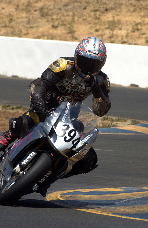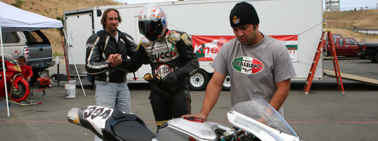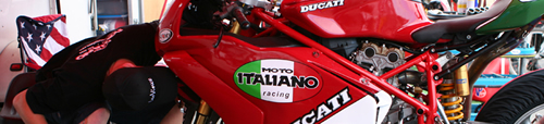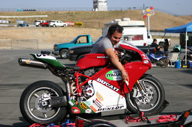 "Oh mother was this a race weekend - long - in the making. We showed up for the AFM's round 6, which was held at Infineon Raceway, still wounded from the tortures of our two past weekends at Thunderhill, and ended our streak of heat scorched bad luck. The MotoItaliano boys kept up their consistent progression by improving our program for another consecutive weekend. We all showed heart by not backing down from the AFM's threat which suspends a rider for having more than two crashes in a year - by still running Formula One and 600 Superbike. We represented Ducati like the champions they are. And we locked horns with our unbeatable Honda mounted arch nemesis, Ken Hill, once again. So sit back and enjoy, because this one's a thriller...