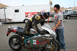 Before we decided to run this bike again Jason did a little research into the bike's history - starting from the day the bike was picked up in August of 2004. As it turns out, and much to everyone's surprise, the Bull had never won a single race in it's entire career in the AFM. Remember, every twins race we won last year we won with our "Giant Slayer" 05 749R. So we all sat there and thought about it. I think it's a pretty well known fact that racers are superstitious by nature, and we do not represent an exception to this rule. But we're also never really jazzed about backing down from the right fight... And getting this Ducati superbke into the winners circle, we all agreed, was the "Right fight." It was well worth meeting the threat of superstition, head on.