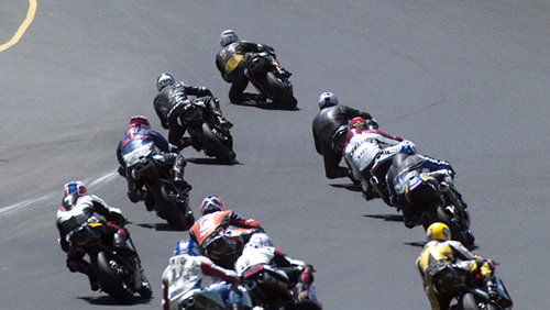 We started Formula One from ninth on the grid, which meant we were on the outside, final spot on the second row. Not a bad starting place at all. I anticipated a great launch might put us in a commanding spot right off the bat. I still think it would have, but we didn't get a great launch. I totally blew it. We went into turn two pretty much in the same spot we started - @ 9th. It's mostly Gixer 750s that make up this class. At Infineon, my guess is a 750 is an ideal bike, so the competition is strong in this class. But this was the "Bull" after all, and although the Bull never did win a race in it's entire career, it's definitely no stranger to fighting the right fights. We went at them all, one at a time. On the brakes, on the gas, into the turns and out, that 999R outperformed the entire field. We wheelied our way out of turn eleven, and took the checkered flag in style. And that's it. In the end all it took was a new paint job, and a new attitude. Turns out that Bull was ready to win all along.