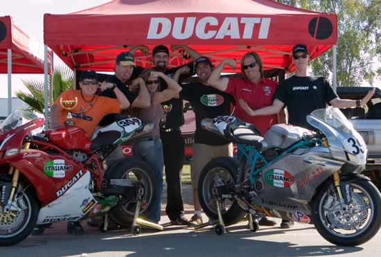 In that race I discovered that this 999R COULD go into the esses wide open, it COULD wheelie over the 170mph hump on the back stretch, and it DID actually have what it takes to win, all along. It's just that all its parts weren't aligned just right. And the boys at MotoItaliano definitely got them aligned just right for these last two races of 2006. In fact they've done a remarkable job of keeping our parts aligned all year long. Having never raced before, and winning as much as they have in their first year, is nothing short of remarkable.