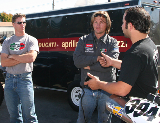 So wait a minute.. "The Bull, you ask?" That's right. The Bull. The very same bike that's actually never won a race yet in two years, that's mystified some of San Fran's best Ducati wrenches, and that has sat, still, abandoned, and rarely even started for almost a year. Dennis Harmon came to the rescue of our last round's spun rod bearing by lending us his 05 999R, which we all ran together last year, for this final AFM round. But there was just one requirement the boys at MotoItaliano had to satisfy before we could race it. They had to get it to run (a task that has stumped more than a few mechanics during almost all of 05, and even some of 06).