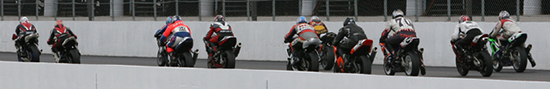 I'd like to say we made up for our underdog horsepower disadvantage on the brakes, or that we got by him by out-riding him, but the sad truth is we were doing our best and couldn't get by. This was NOT Tommyboy running scared. This was Tommy on his game.. Lap after lap the best we could do was stay close. We'd go through turn three with such great roll speed that we'd almost hit Tommy. We'd out-drive him, outbrake him, and desperately keep in touch through traffic that seemed to be there solely to make our task more difficult. On lap six I tried a late braking move on him right in front of a crowd in turn three. They say everyone rose to their feet as we came from four bike lengths behind and shot by Tommy on the brakes with our rear end swinging from side to side. I watched that apex pass right on by though, and recovered as best we could by going way out to the tire wall before turning in on the marbles. The crowd surely thought we were done but we managed to square off our turn before the tire wall and head back to the fight just outside Tommyboy's left side fairing. Turn three is a 160 degree turn that starts flat, but exits up a long off-camber hill that seems to keep turning right, for what seems like an eternity, while you bang up-shifts as the edge of the track grows threateningly closer (I say "threateningly" because there lies a concrete barrier wall about twenty five feet off the side of the track that boasts a very long list of victims over the years). As Tommy and I jammed our way up this hill, with our bike about six inches to his outside, I expected him to give us some room so the two of us could take this fight all the way to turn six "The Bowl." But Tommy was having none of it. He rode his line right to the apron, and pinched us off. I had to let off or it was game over. Just then some guy named Kimp came rocketing by as the three of us headed for the bowl - Tommy still in the lead. I thought, "Great move, jack-ass. Now we're in third!" For the next two laps we hit traffic that was terrifically slow. Our lines were all over the road. At times the track looked like a swarm of bees after a twelve year old took a good swing at a hornets nest. I knew our chances of catching either of them were slim to none, but we gave it everything we had anyway - desperately clinging to the hope that we could stay close enough in touch, "just in case." On the white flag lap, while going through turn ten, those two came up on a lapper that really jammed them up. Our bike was about six lengths behind. Kimp, who was leading at this point, got through the chicane clean, but I saw Tommy's shoulders tighten up - which told me he was in trouble. He hesitated behind this lapper for an instant too long, and sometimes an instant is all a Ducati 749R needs... Suddenly we were in a "good enough" spot to try for a double pass through this chicane. Typically there is only one line through a chicane, and this chicane was no different. I squared the turn off, picked it upright as much as I could, aimed for a line just over the edge of two curbs, and pulled the trigger... And we made it.... Second place from 20th, with Tommyboy right on our tail. Two Ducatis on the podium for heavyweight superbike. First time all year at NHIS. Does it get better than that....?