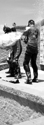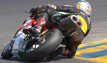 Before our five week AFM summer break began, I got a call from a good old friend of mine, Leslie Grossman, owner of BCM Motorsports, in Laconia New Hampshire. He asked if we had any time in our race schedule to do a road trip back east. Maybe take on some of our old rivals again. Run around Loudon a few more times, under the collective banner of both BCM & MotoItaliano... We all jumped at the chance. It was strange being a foreigner in a place I used to call home. I remember always dreaming that one day I might move to California, but somewhere deep inside I feared I never would. Now here we were representing California, on a track filled with cut throat competitors who had all been brought into this roadracing world while fearlessly facing concrete walls and tire barriers that eagerly threaten to collect you and your bike at the fist sign of mistake. This is an example of the proper line through turn three at Loudon.. HOLY CRAP! ![]() We met the east coast challengers head on in two races, Heavyweight Superbike, and Heavyweight Supertwins. We left with a second place in superbike, a win in supertwins, and we set the third fastest lap time of the entire weekend - all on our Ducati 749R. By this point our TagTeamDucati effort had built some momentum. We returned home with two remaining tasks at hand - not just to survive the last two AFM rounds of the year, but to win them. You see, although no one had mentioned it, we were actually the only team in the AFM that was undefeated in a particular class in 06 - up to that point. And just like a no-hitter in baseball, no one had spoken a word about it...