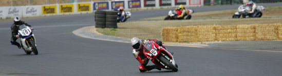 some fast teams in the AFM's Open Twins class. In 04 it was Ken Hill and Brian Long. In 05 it was Ken again, Jack Pfeiffer, and even Mark Junge showed up at Thunderhill once. For 06 it was Craig McClean on a 749R, and then Brian Parriot. The points weren't so close anymore, so we were good there, but suddenly I could almost feel a looming presence of doom that was about to strike. From the instant that Open Twins flag dropped I held my breath and pinned that throttle just as as long as I could everywhere. We went into turns sideways and came out on one wheel. It felt like being chased by a herd of hairy monsters in an eight year old's nightmare.