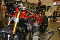 This weekend marked the second round of the AFM roadracing series, which was held at the well known Infineon Raceway, in Sonoma Calfornia. Infineon has an aggressive, tight layout with many elevation changes, all of which spare you very few moments to relax. In anticipation of this event we planned to bring two race bikes - our tried and trusted Ducati 749R, and also the latest addition to our MotoItaliano racing stable - the very well known Ducati 999R. We picked up our new bike about a month ago and since then we created our build plan, and ordered all the race parts we will use to make this machine as lethal a weapon as we can. Ultimately though, we only really left ourselves two weeks to take this new bike from stock street trim, to full-on race prep. As it turns out two weeks wasn't long enough, so for just this second round we came up with a very potent "Plan B."