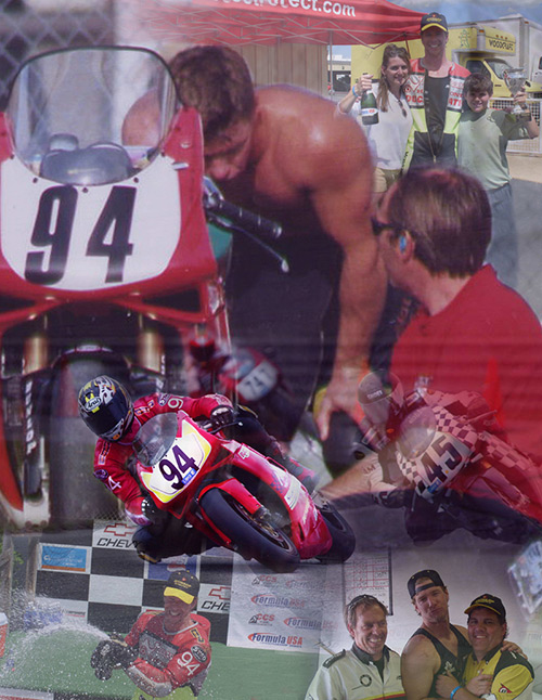 * Arrived on the California racing scene after missing the first three rounds, yet only missed winning the 2004 AFM Open Twins Championship by one point due to the mechanical problem on 8/08/04. One of the first teams to dominate races here in California on Ducati's new (at the time) 2005 999R. |
